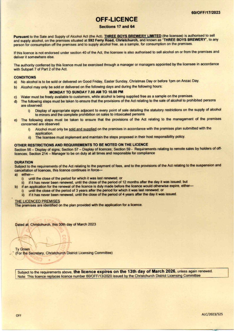 As per the Sale and Supply of Alcohol Act 2012, we do the following to meet our requirements relating to remote sales of alcohol: